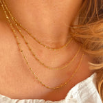 The model is wearing necklaces in 35cm, 40cm, and 45cm lengths.