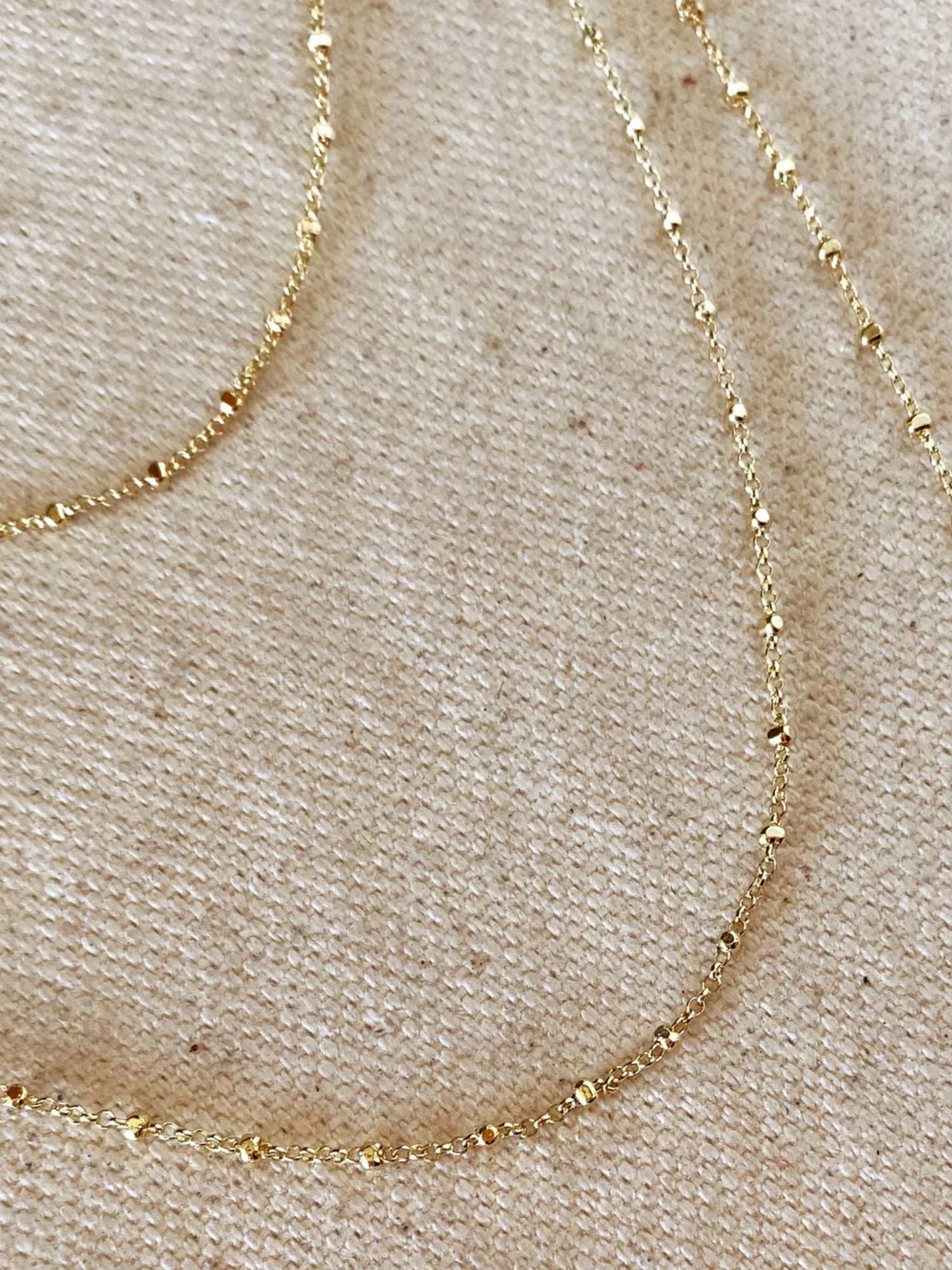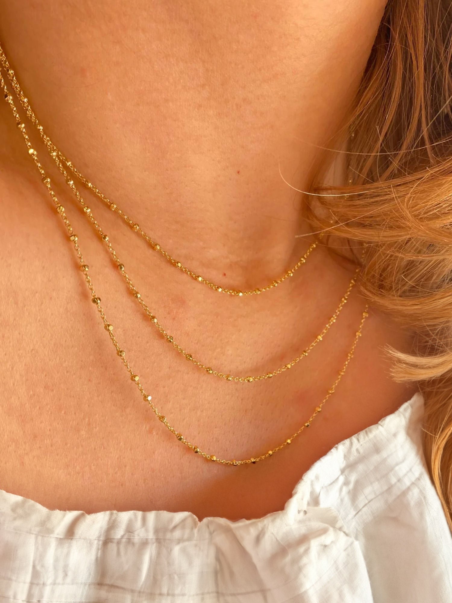 Understated and elegant, the necklace features a delicate gold filled dots and is available in two lengths to suit your style and features an extender chain to adjust if needed.