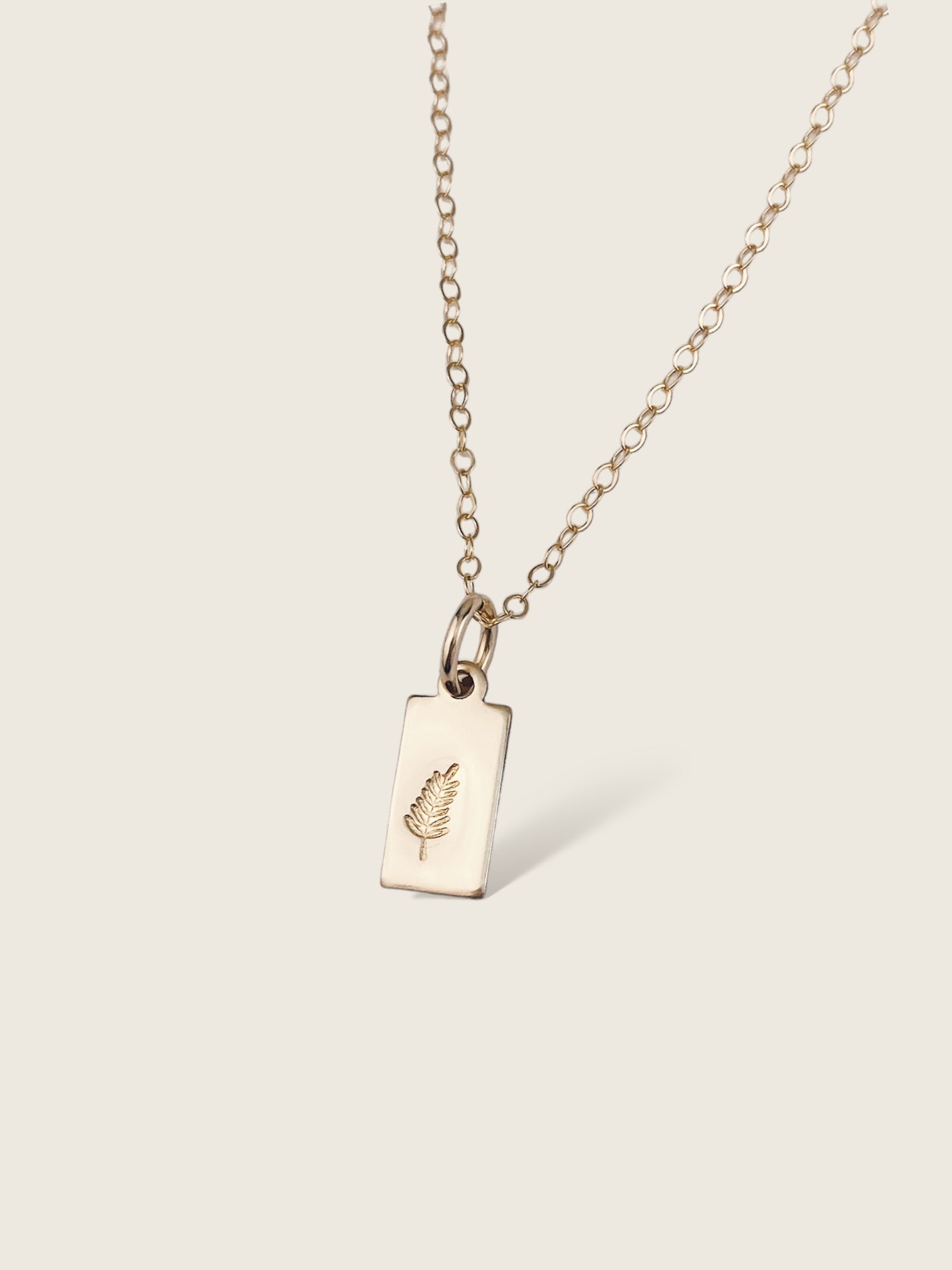 Rectangle gold-filled tag or sterling silver features a Mini Fern design for nature lovers to remind us of life's simple yet beautiful things.
