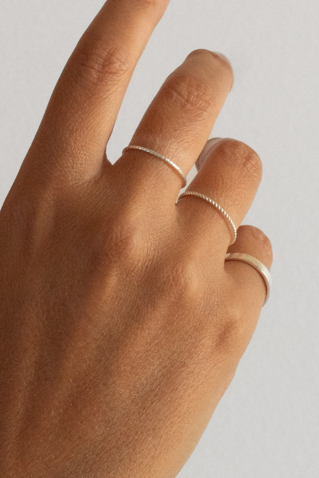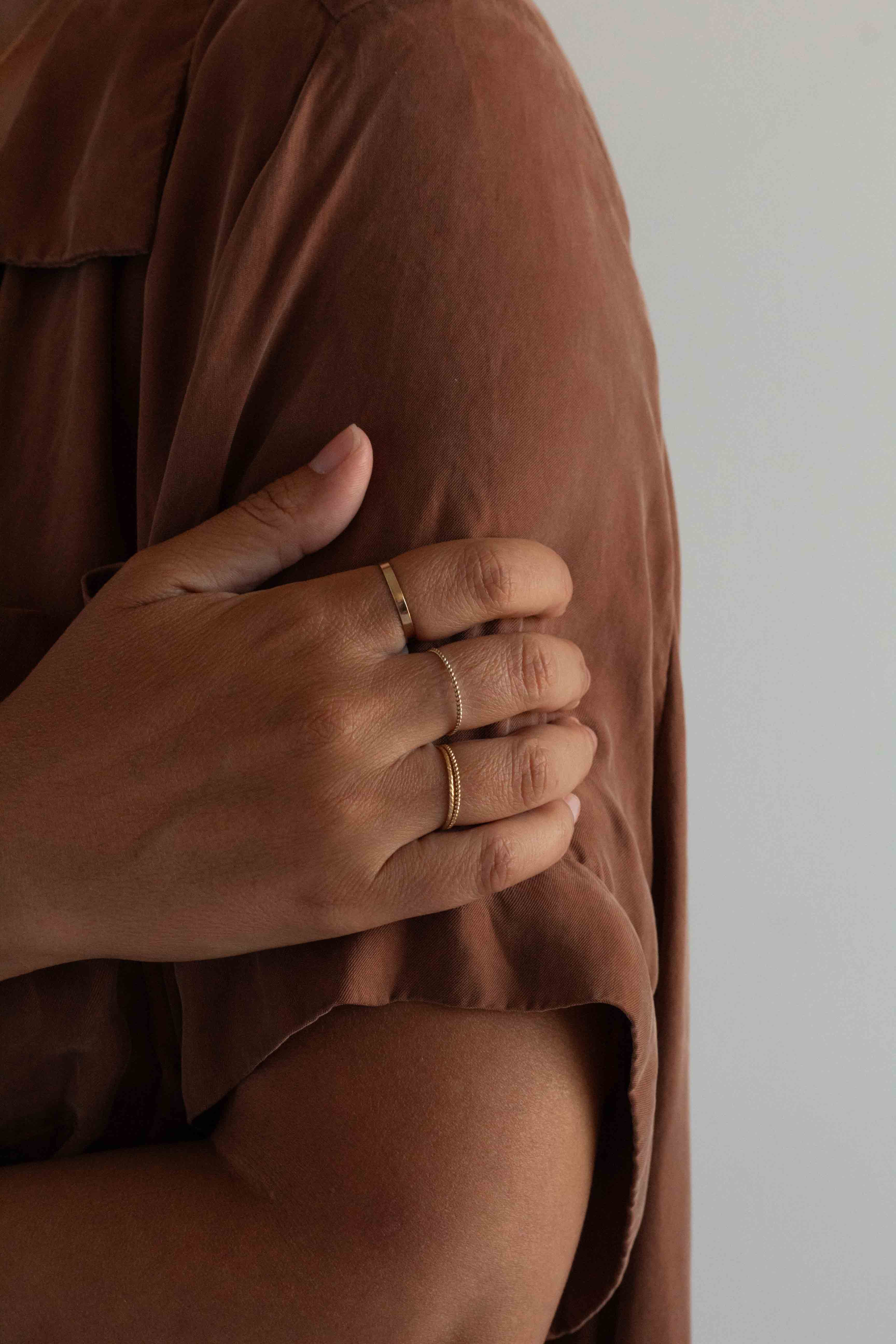 Add a touch of texture with the Rope Stacking Ring. Its unique, twisted design offers a sophisticated yet playful look.
