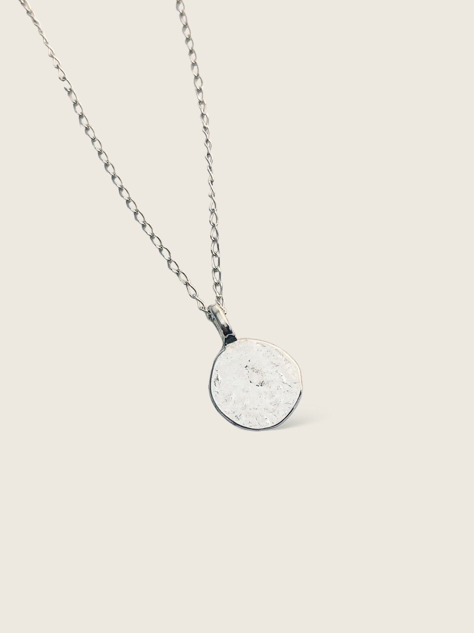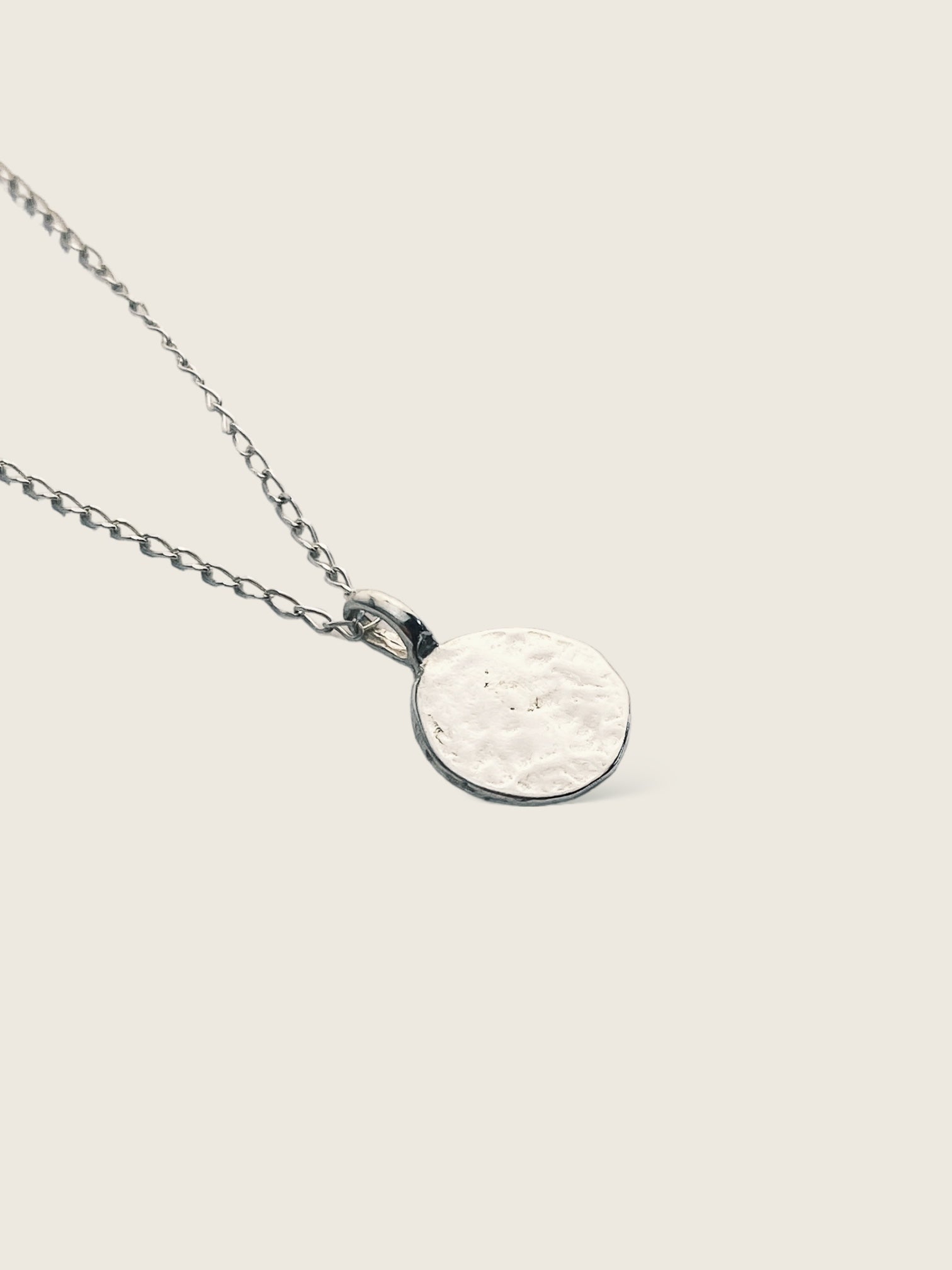 A curbed delicate chain featuring a 13mm organic Pendant.
