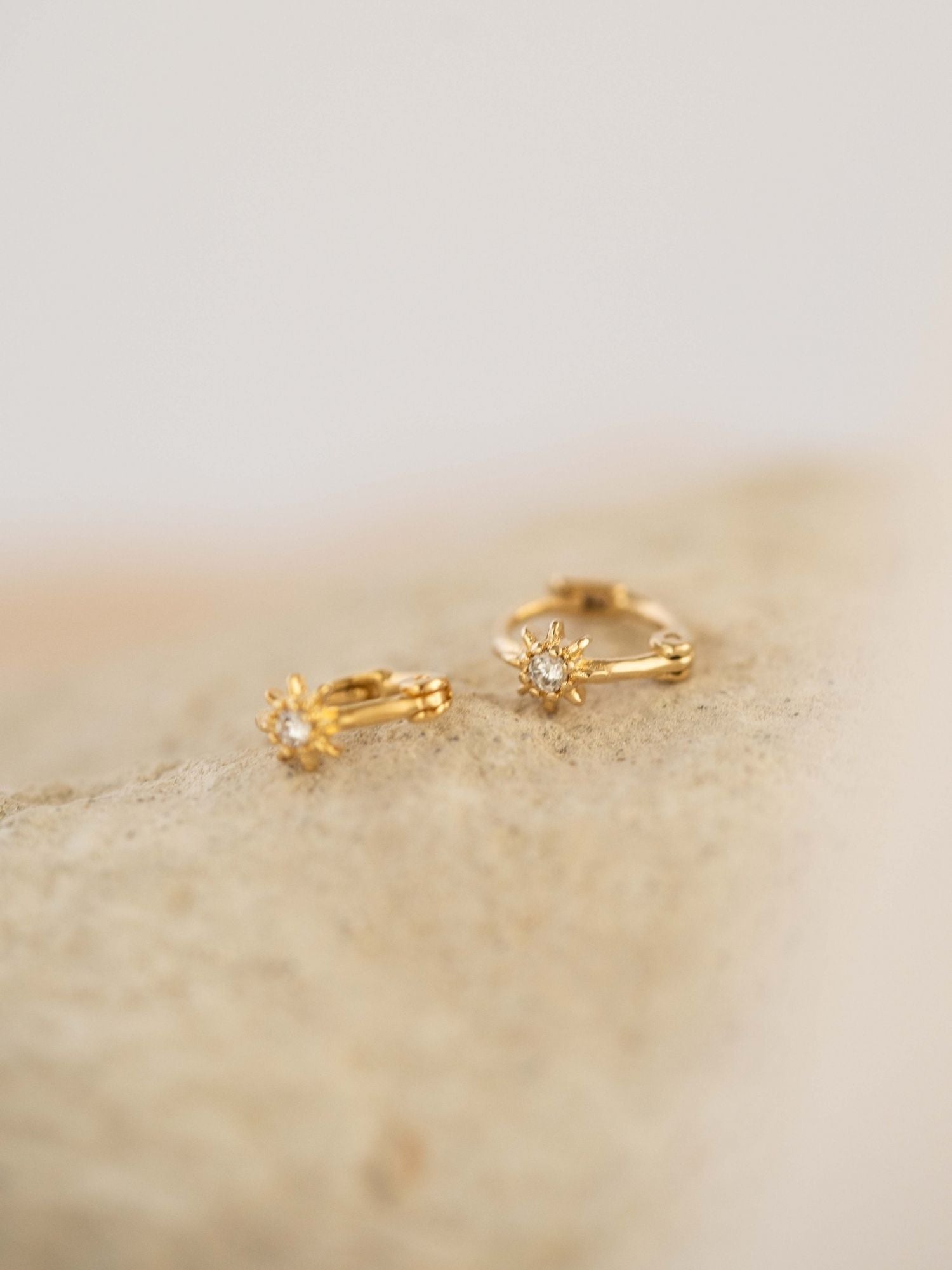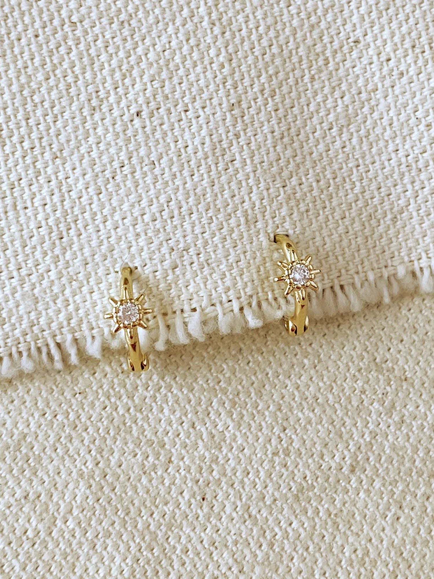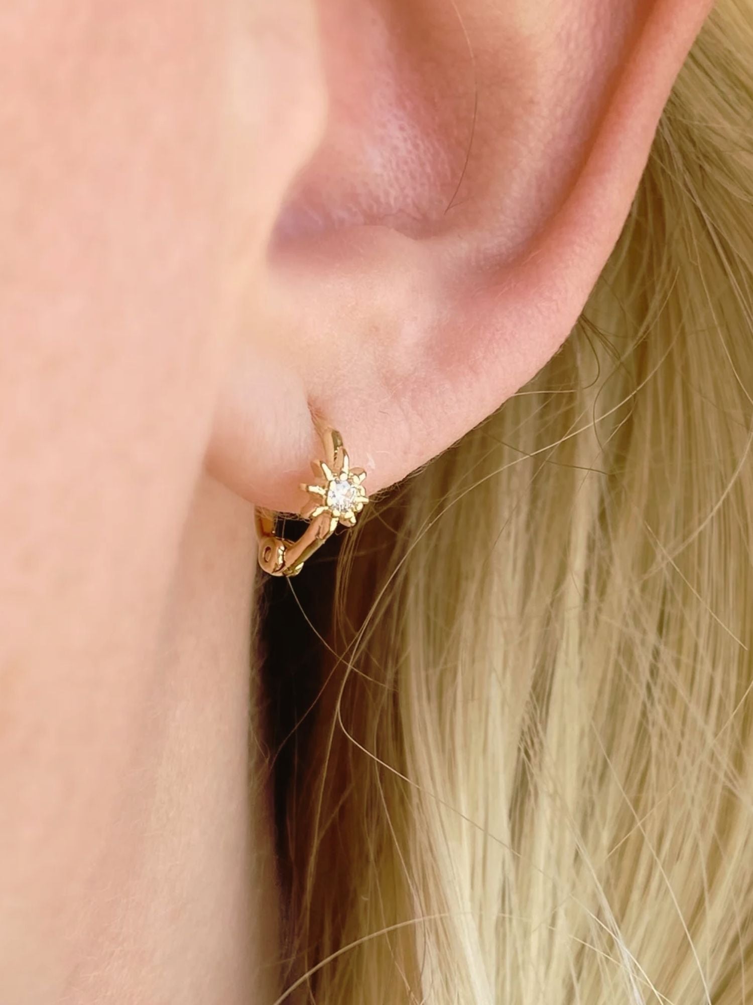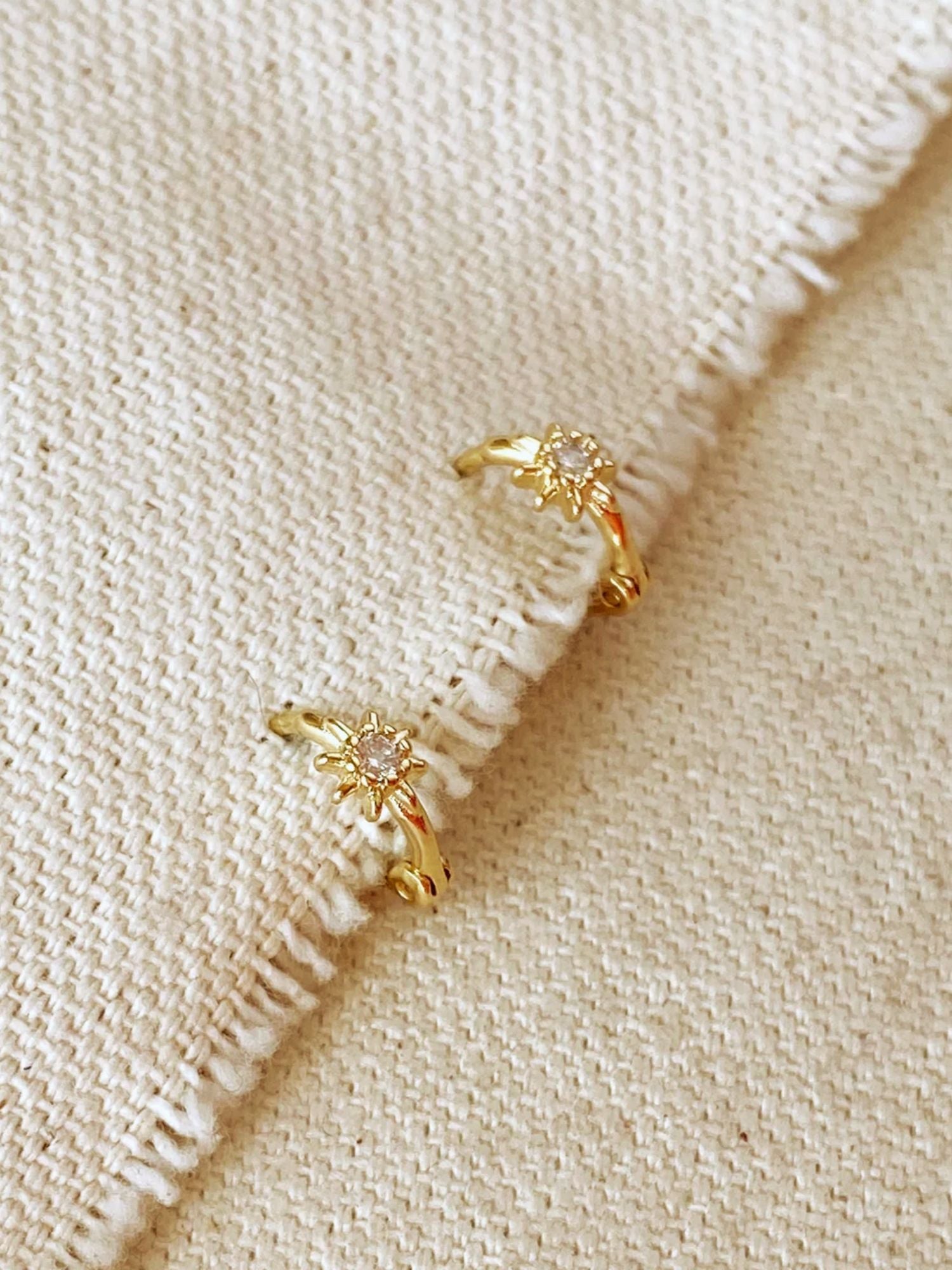 18k Gold Filled Starburst Mini Clicker Hoop Earrings