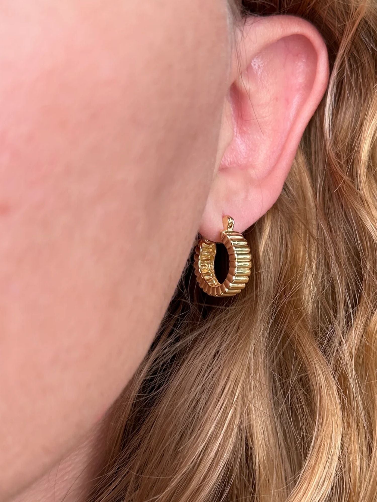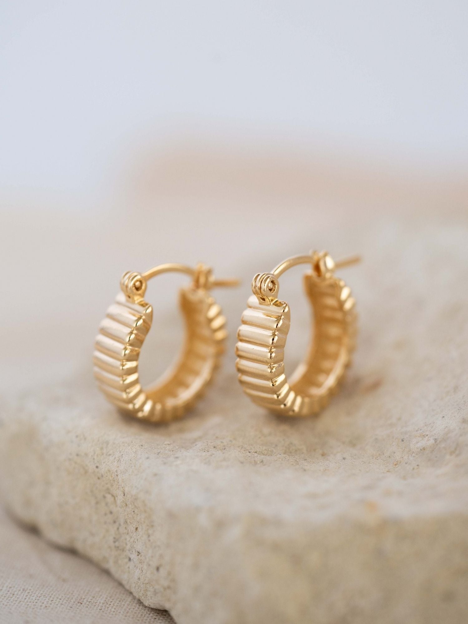 Unique, stylish must-have Ridged Hoop Earrings. With a sleek and minimal design, they'll bring a touch of modern elegance to any outfit - a must for any occasion.