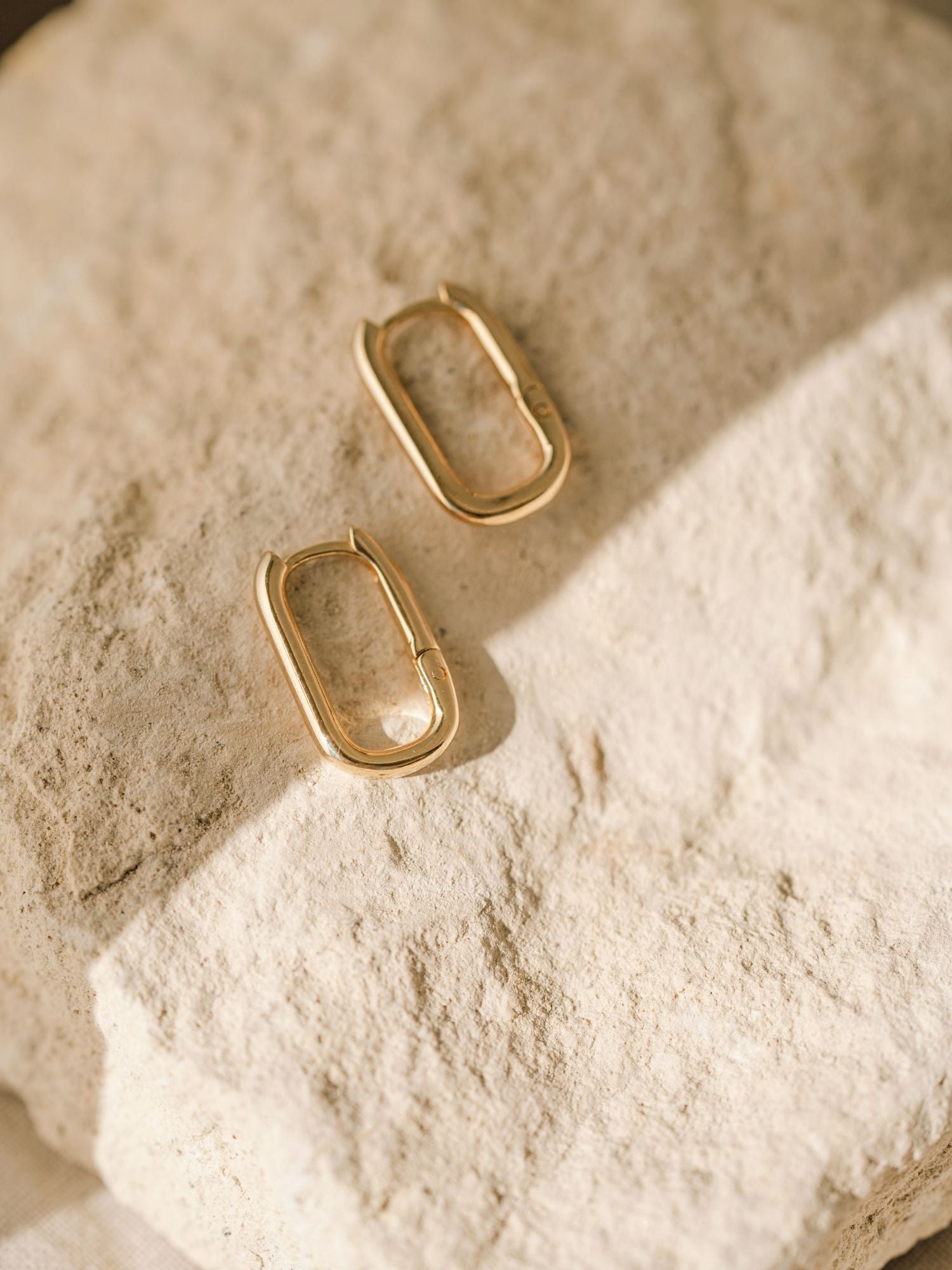 These sleek, oblong hoop earrings offer a modern twist on a classic style, perfect for adding a touch of sophistication to any outfit. Stack them or wear them individually.