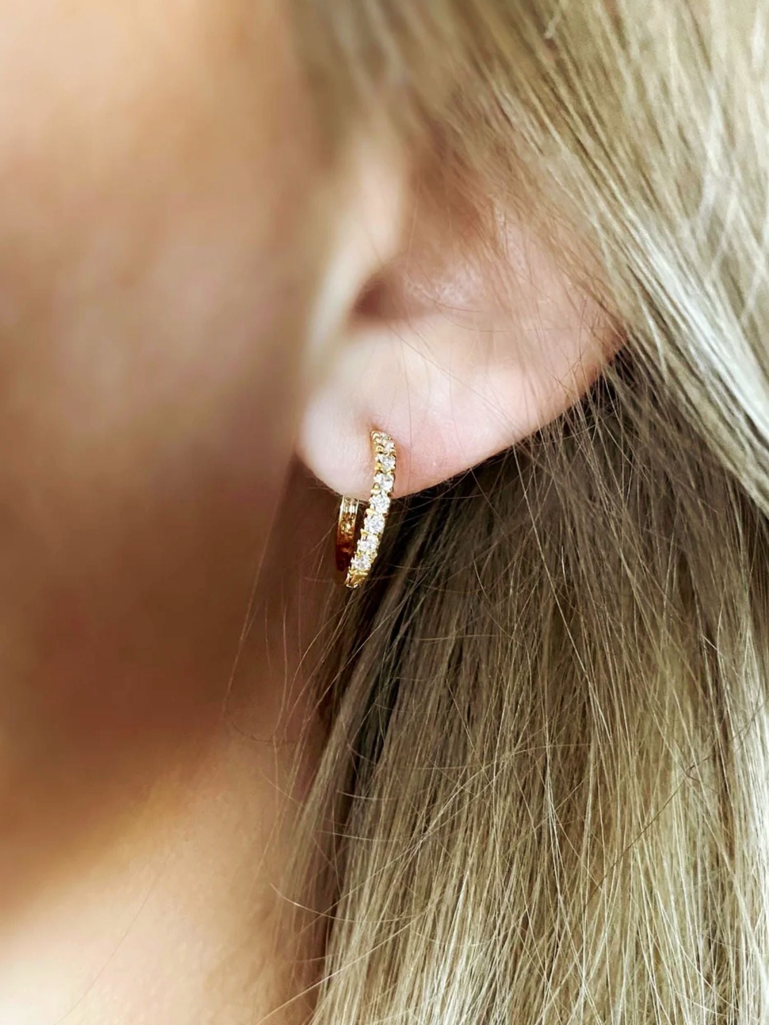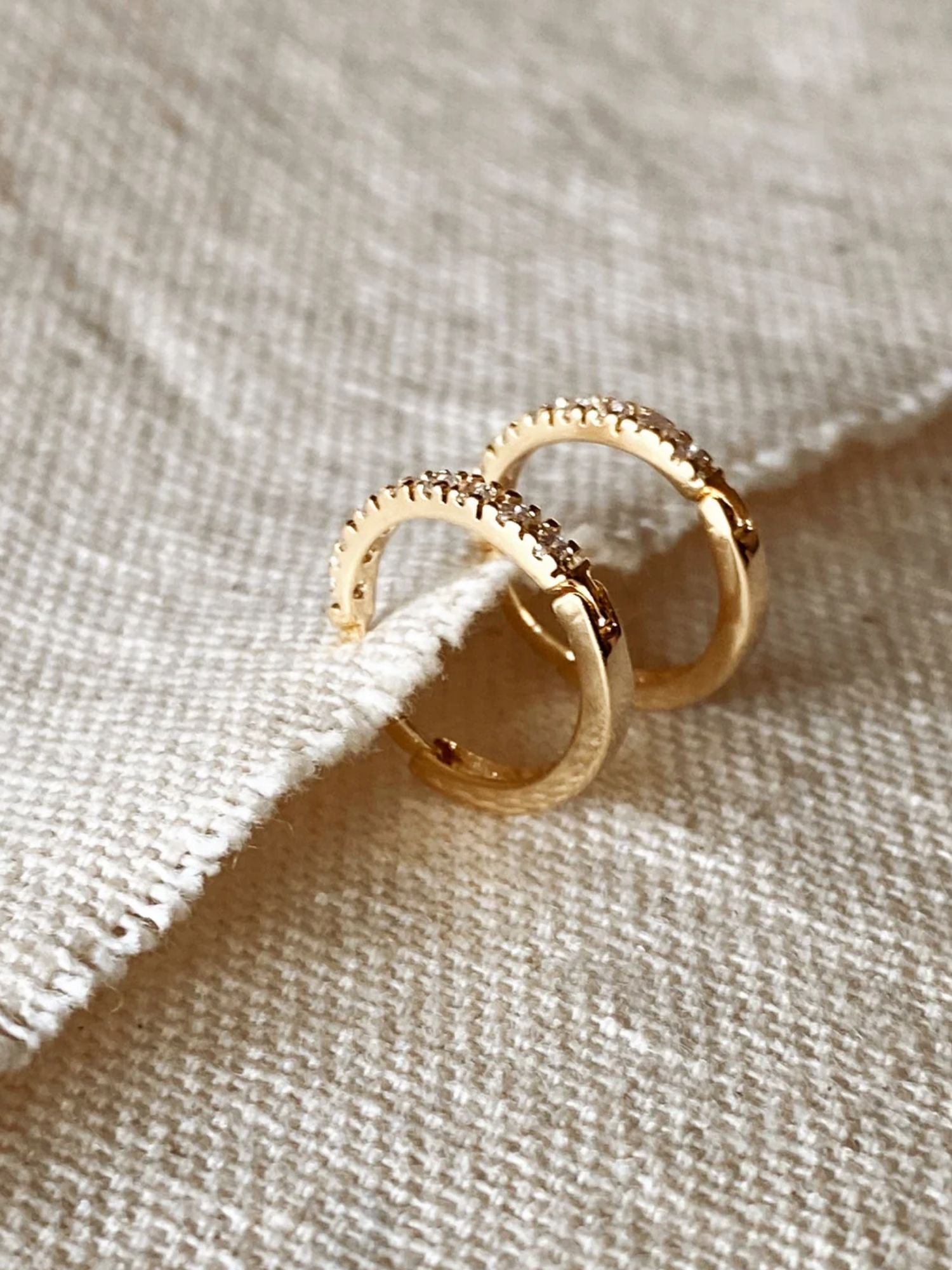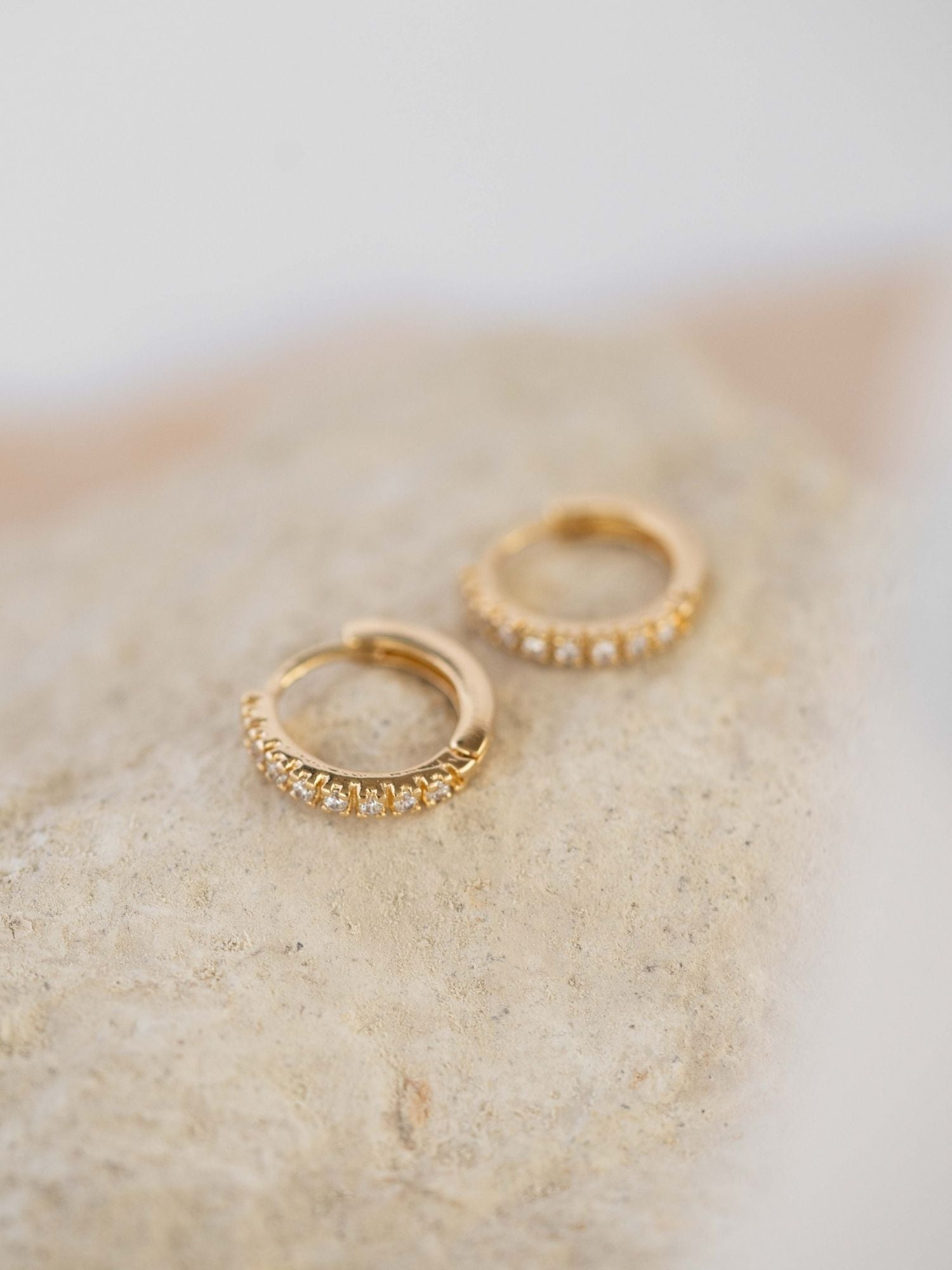 Made with high-quality gold filled and feature thin hoops adorned with sparkling cubic zirconia stones. The perfect take on modern trendsetting jewellery, these earrings feel exclusive and stylish.