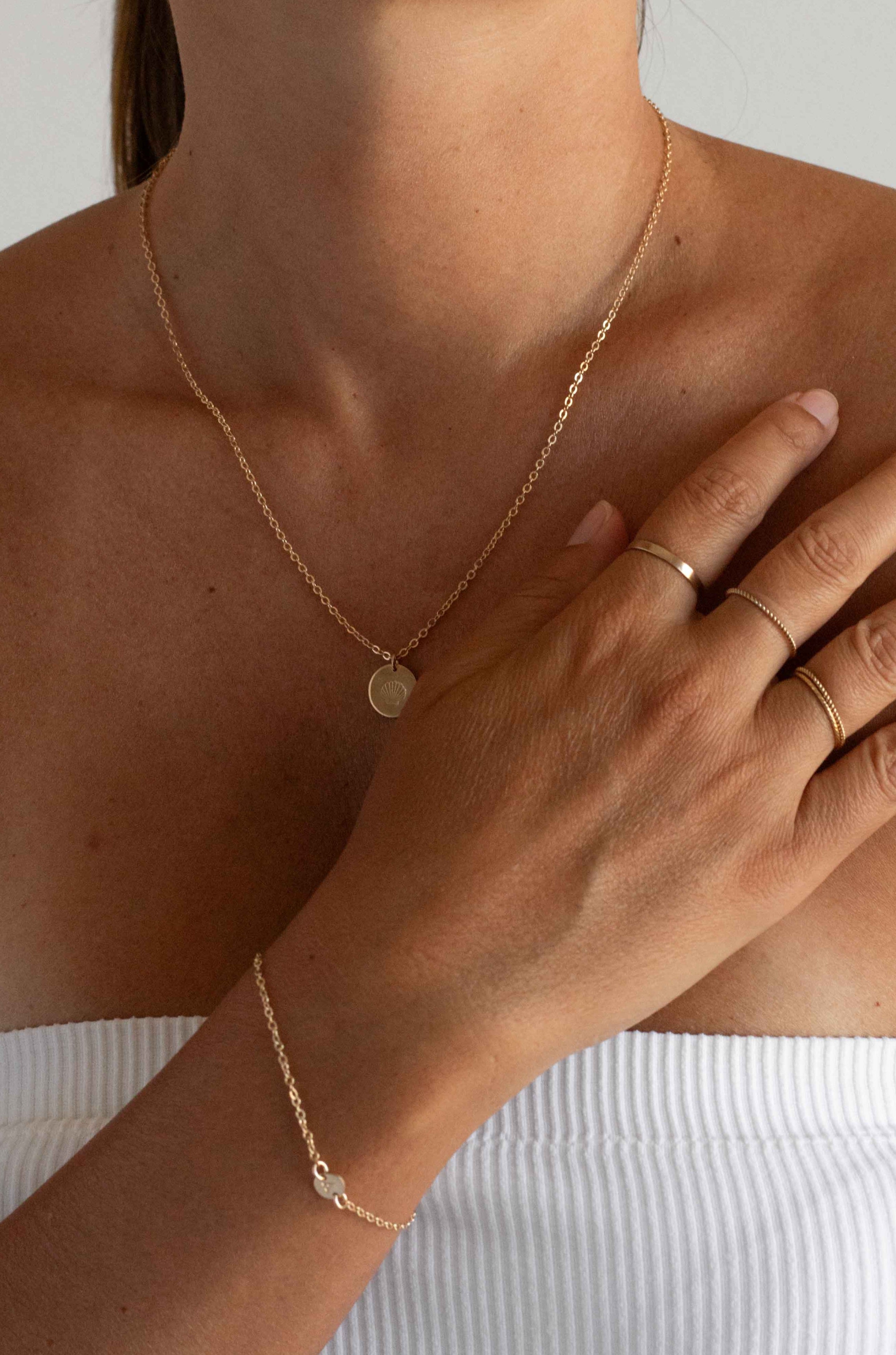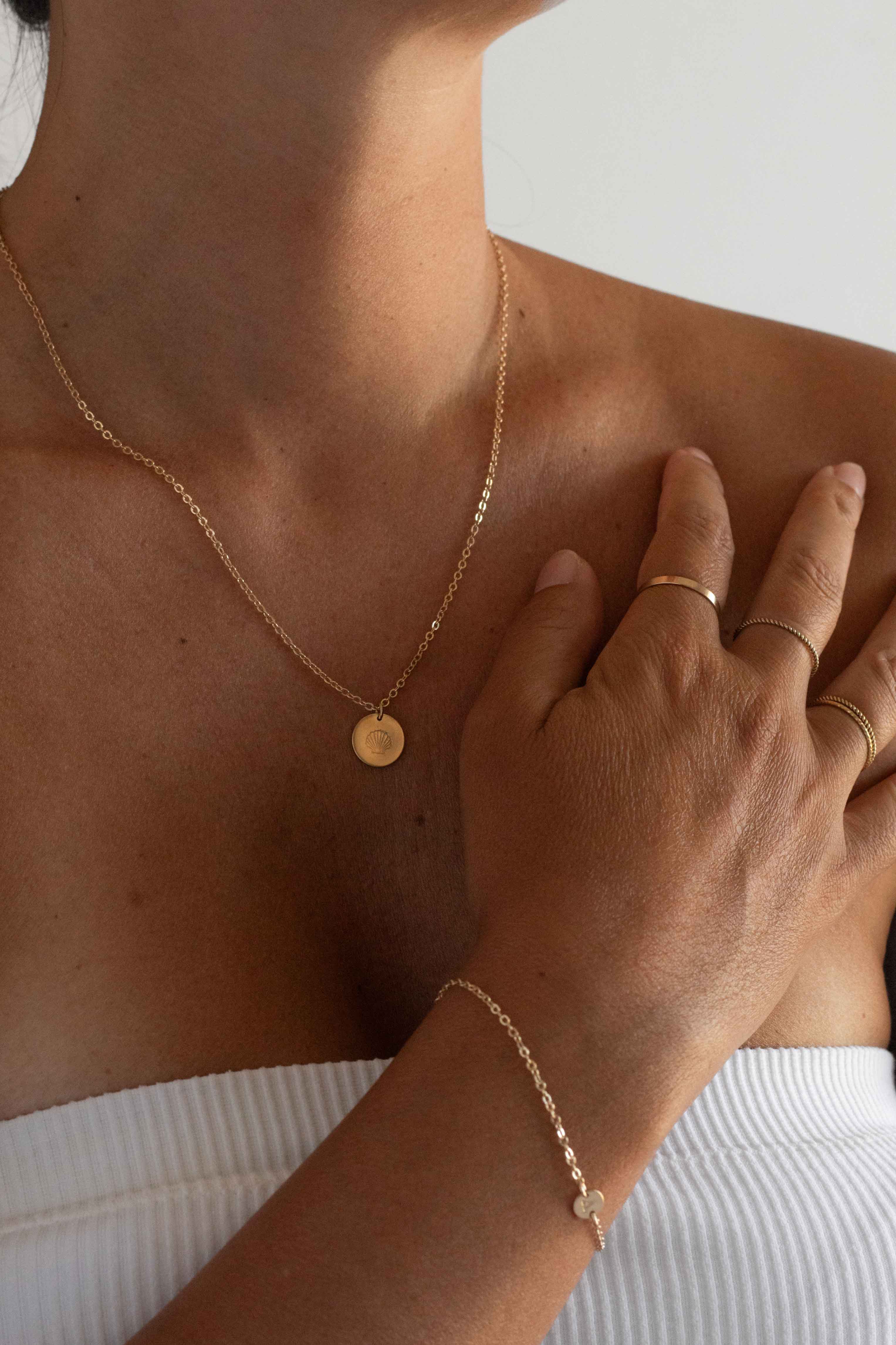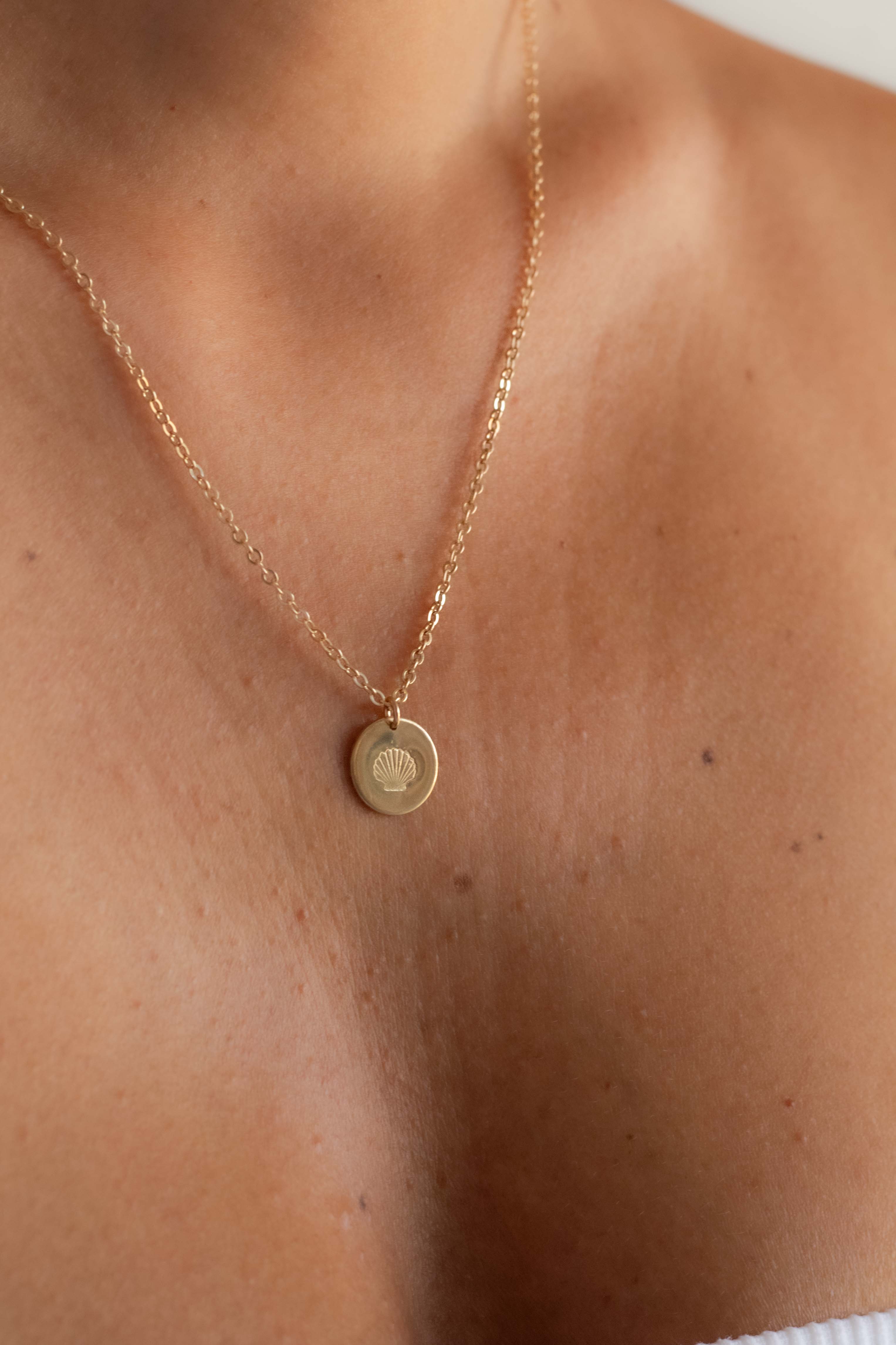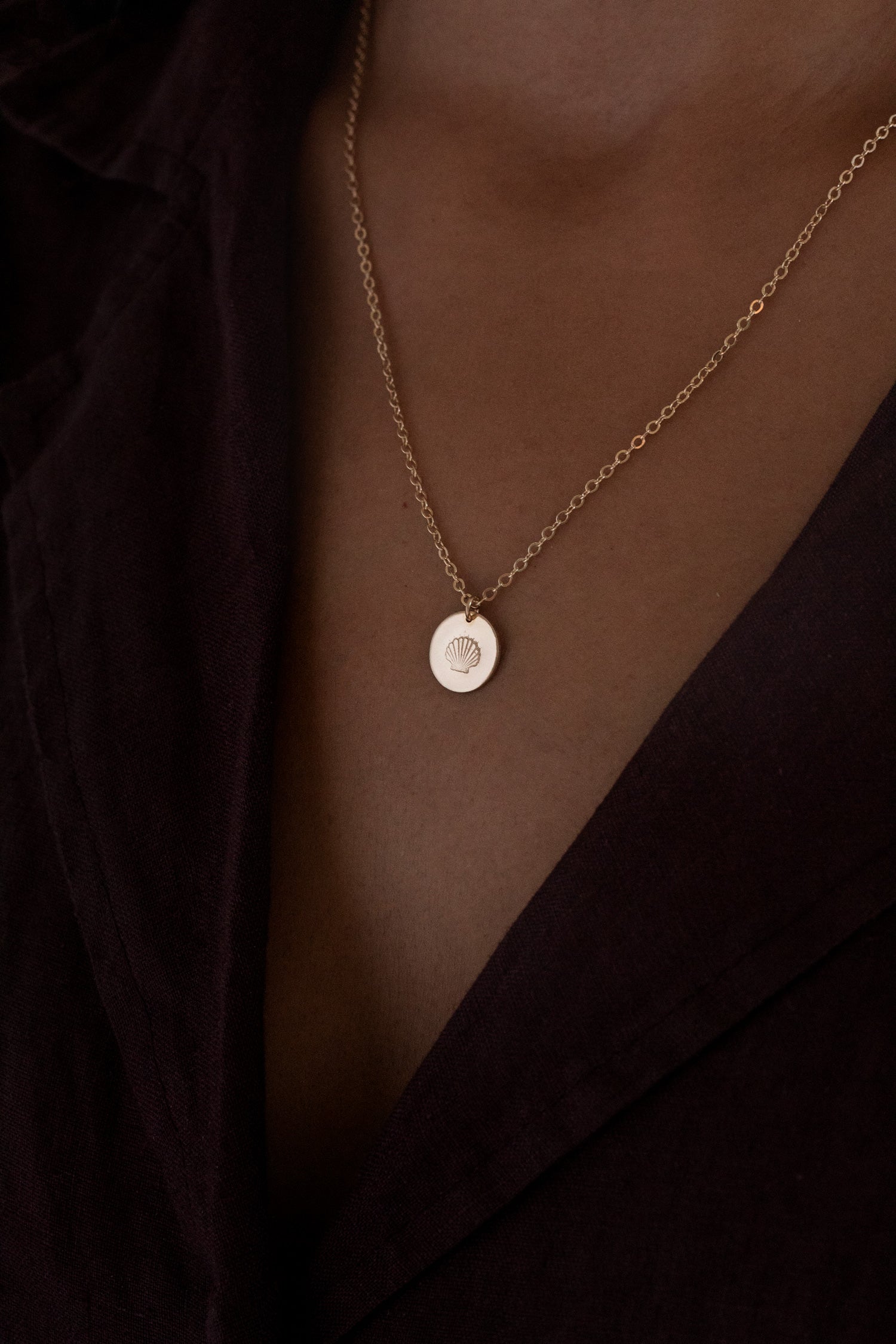 Hand stamped in the sunny coast, the shell necklace features a shell symbol and a hand made chain.
