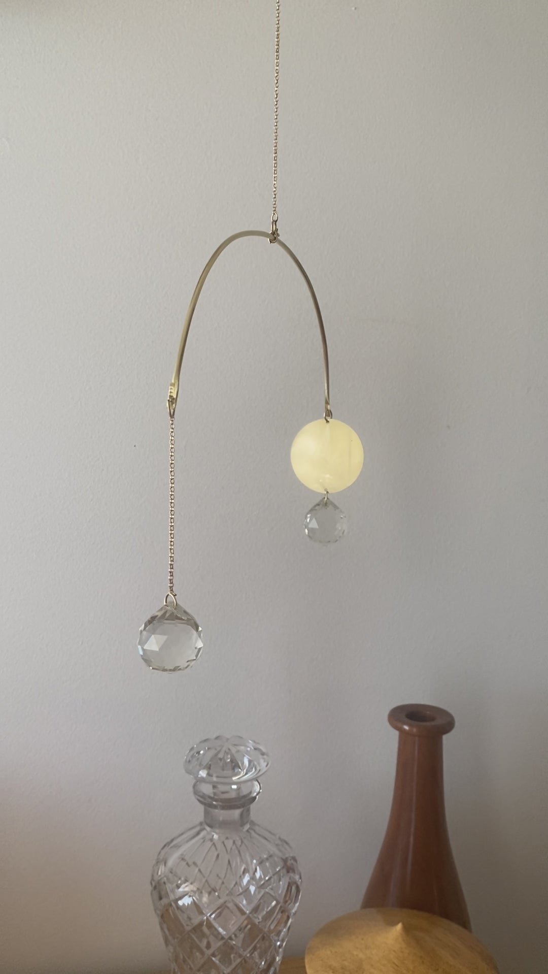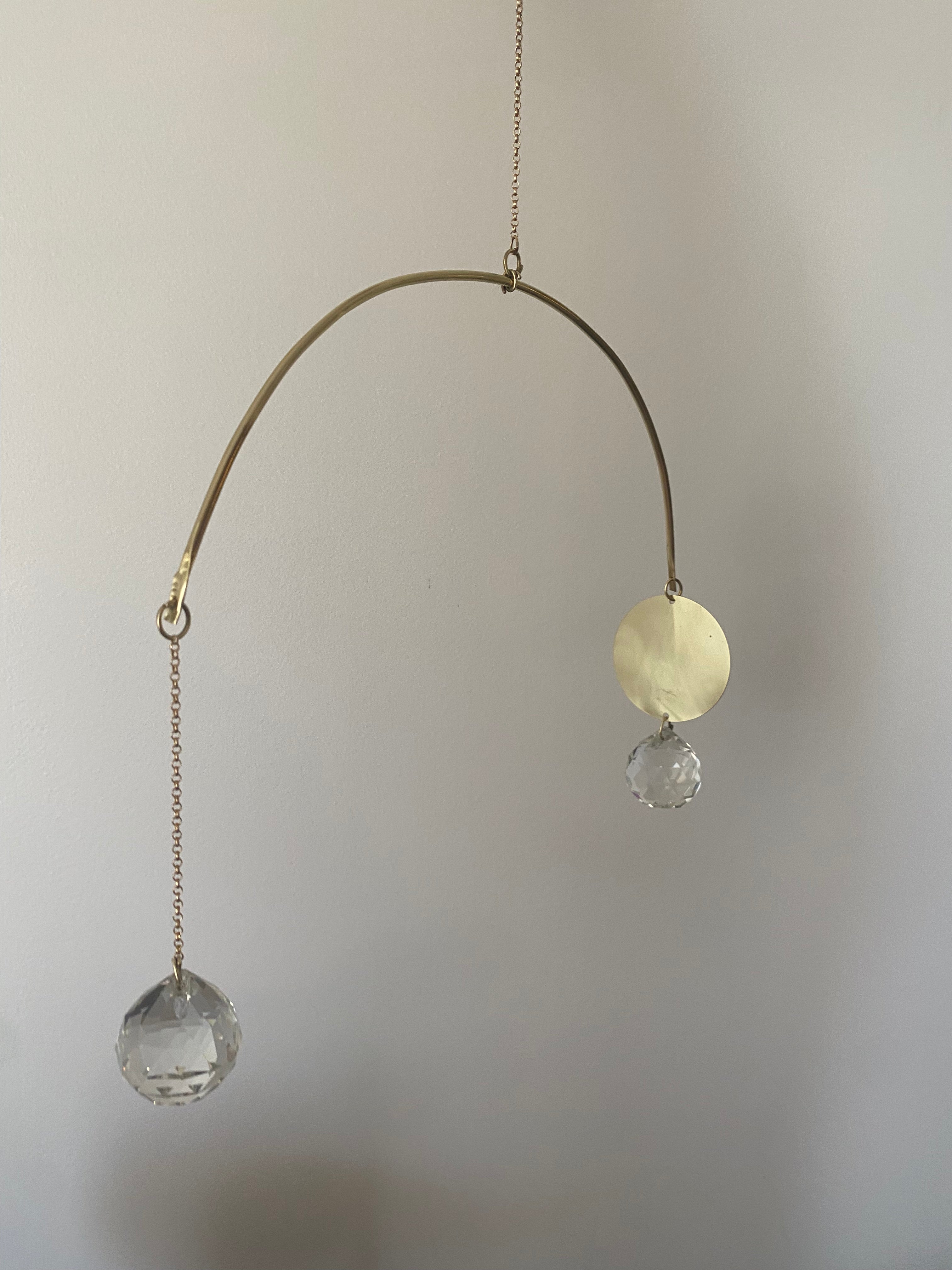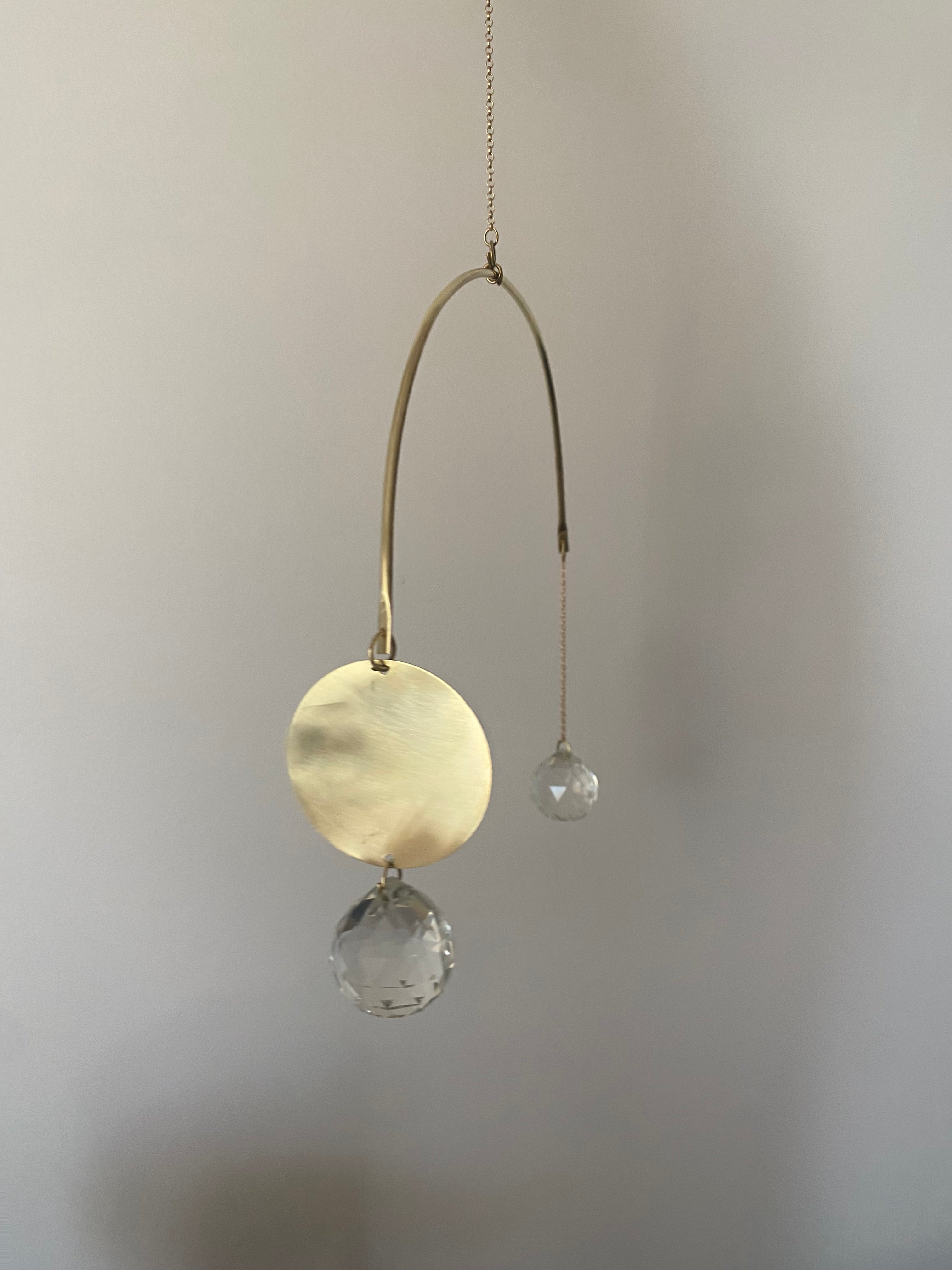 Built with recycled solid brass and two stunning crystal prisms, the Bronte Mobile captures sunlight and scatters it across your space in mesmerising patterns as it gently moves when there's a breeze. Ideal for those who love clean, minimalist aesthetics, this piece really transforms and quietly elevates any room into somewhere special.