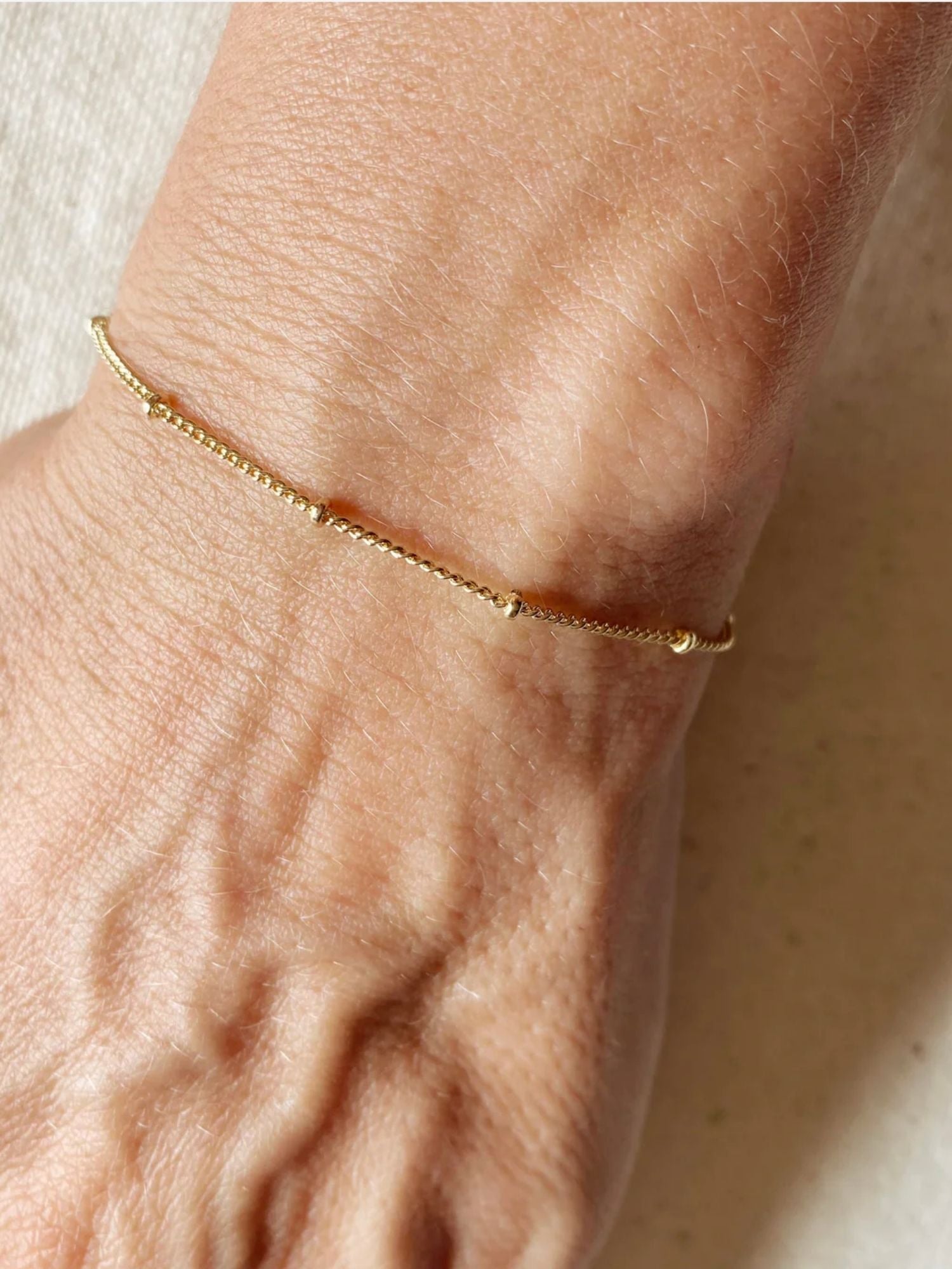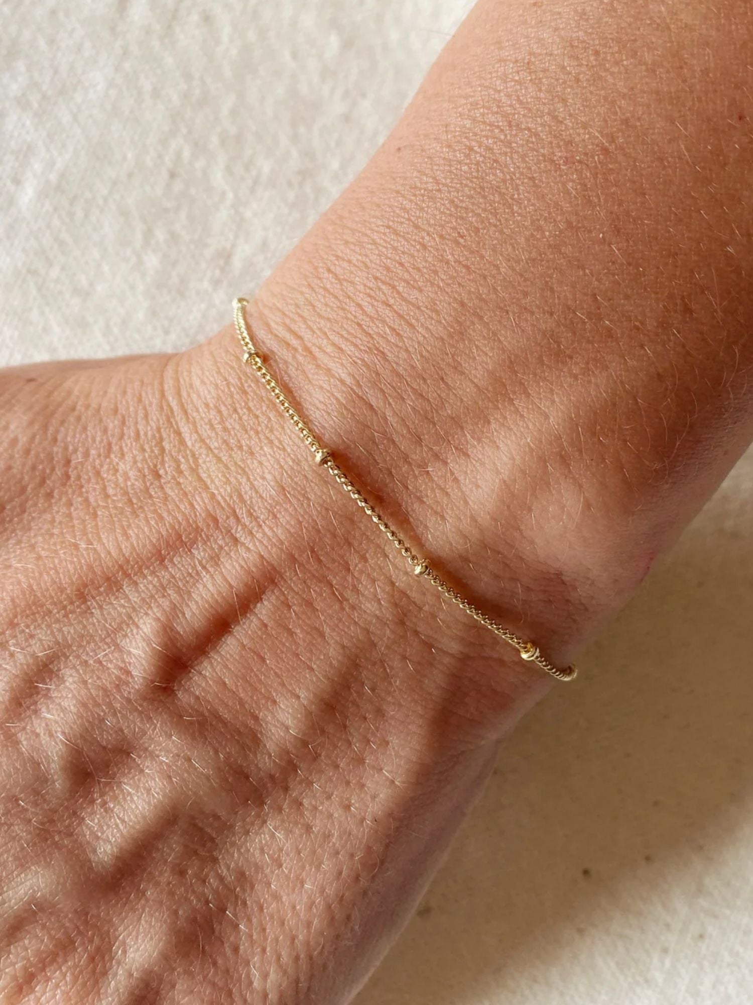 This 18k Gold Filled Satellite Bracelet is the perfect accessory. Delicately crafted yet distinctively trendy, its thin silhouette radiates a classic, minimalist aesthetic. Crafted from high-quality materials.