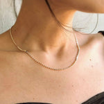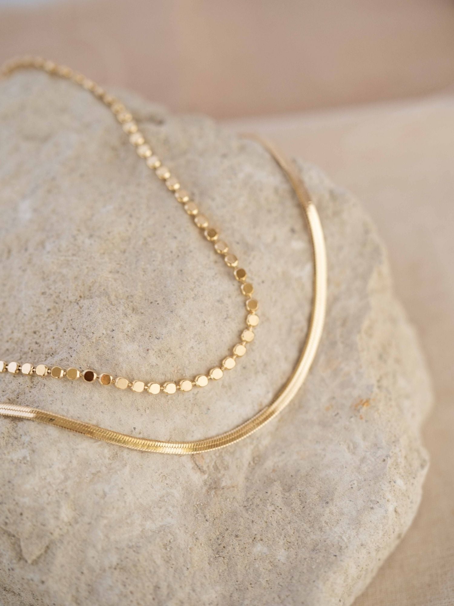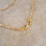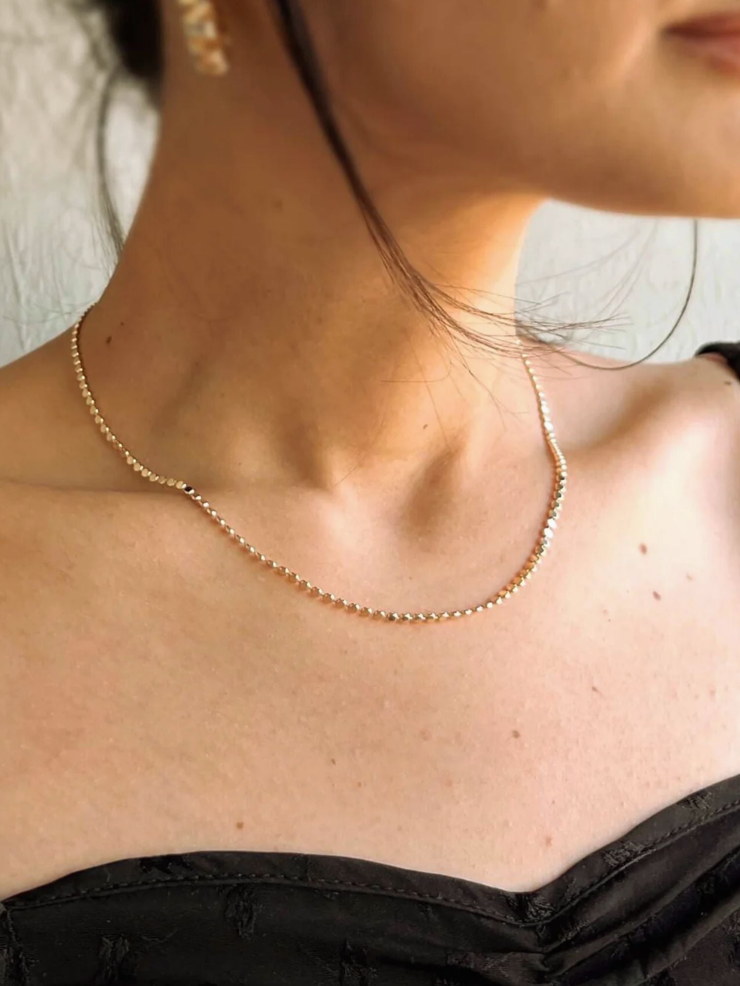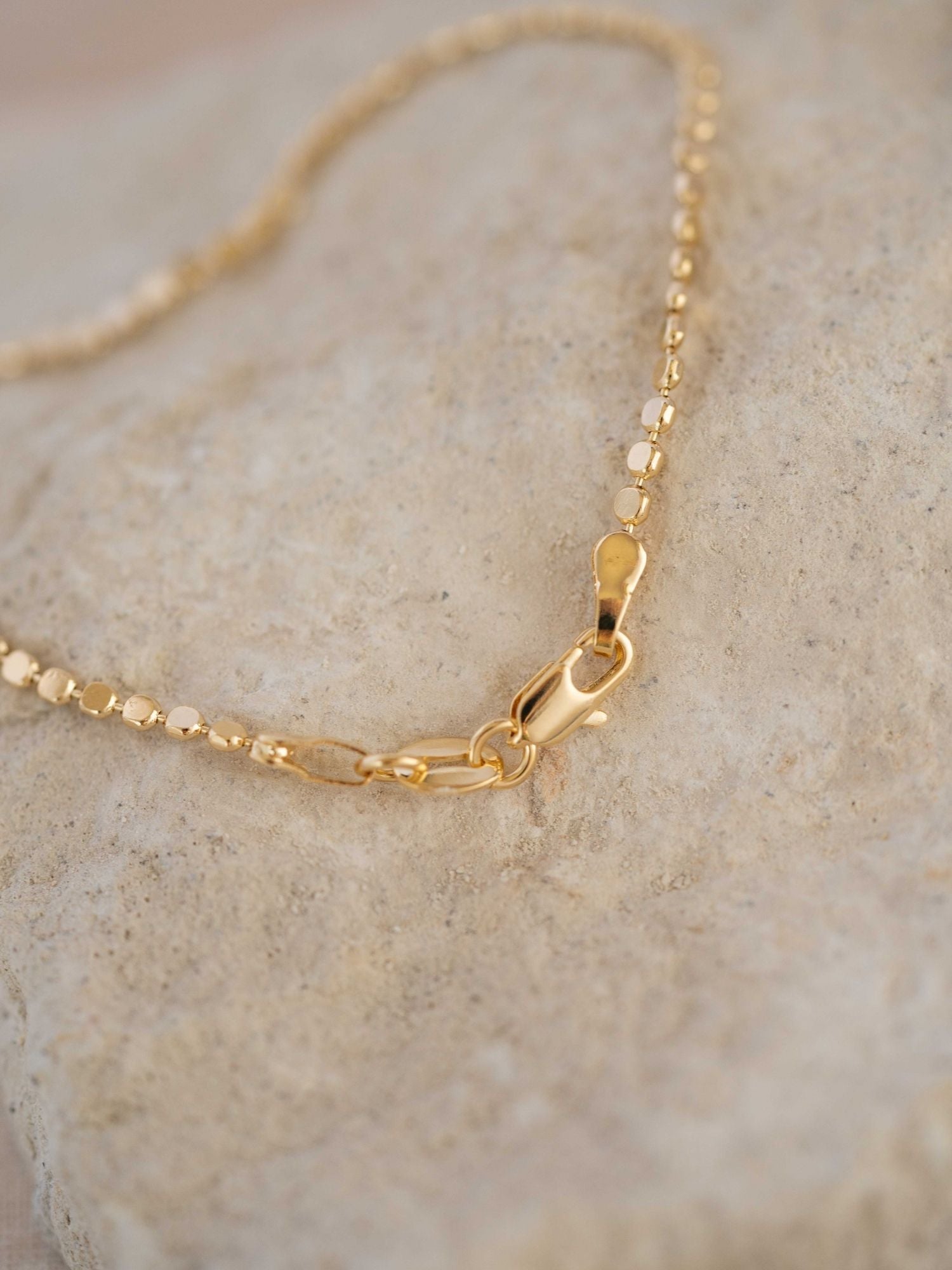 This stunning chain necklace has a unique flat ball design. Crafted from high-quality 18k Gold Filled 2mm Flat Ball Chain.