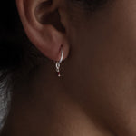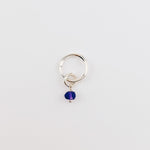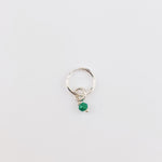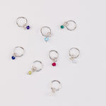Delicate sterling silver hoops featuring a petite gemstone charm.