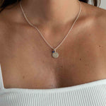 Crafted in Sterling Silver, this beautiful hand made pendant comes with a blue lapis lazuli real tiny gemstone to pay tribute to the ocean hues.