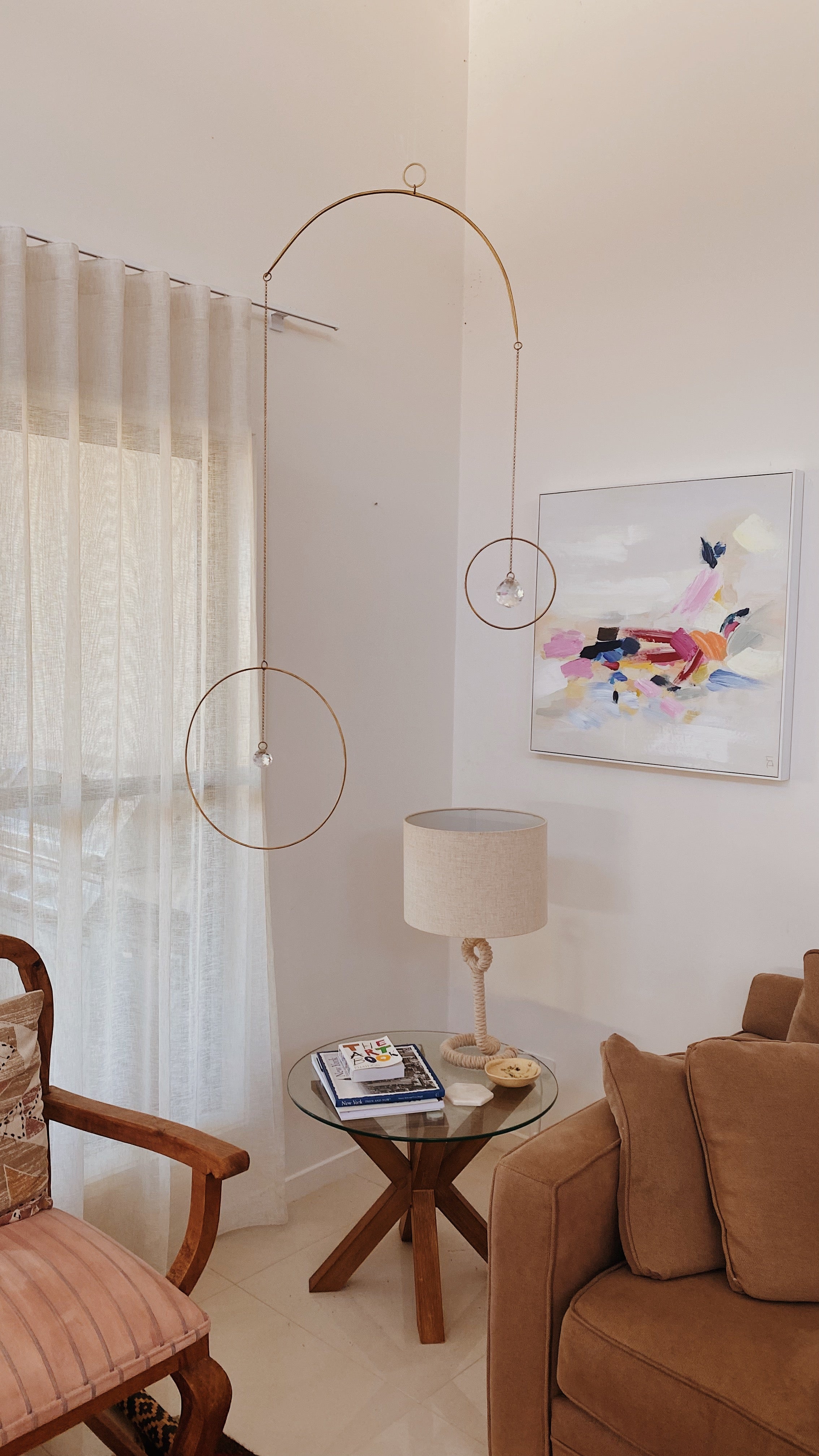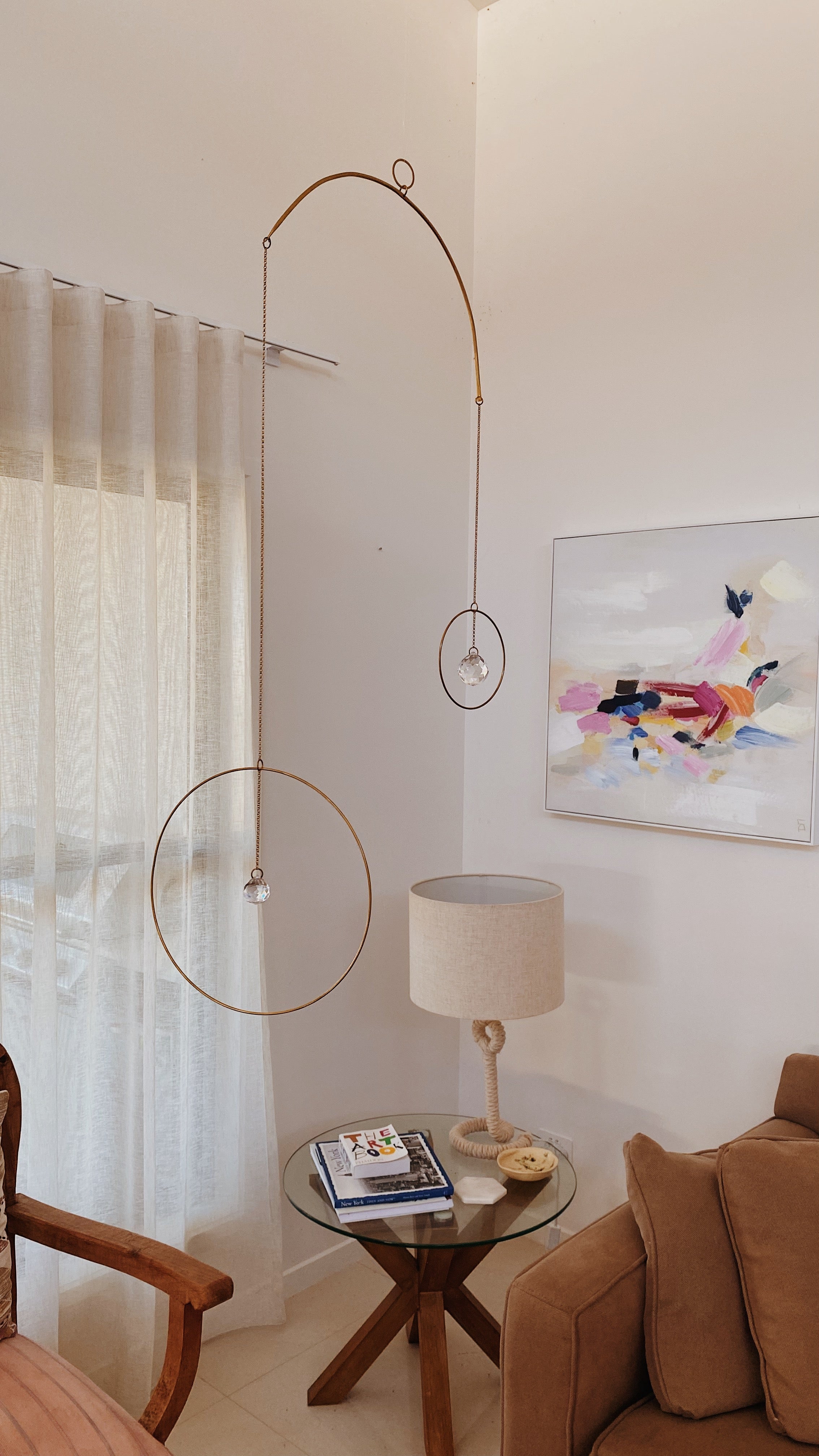Crafted with care and designed primarily for interior use, your Elysian Large Mobile Suncatcher is susceptible to natural tarnishing due to the inherent qualities of solid brass. Over time, exposure to various environmental factors, such as humidity and air impurities, may contribute to developing a patina, adding character to your piece.