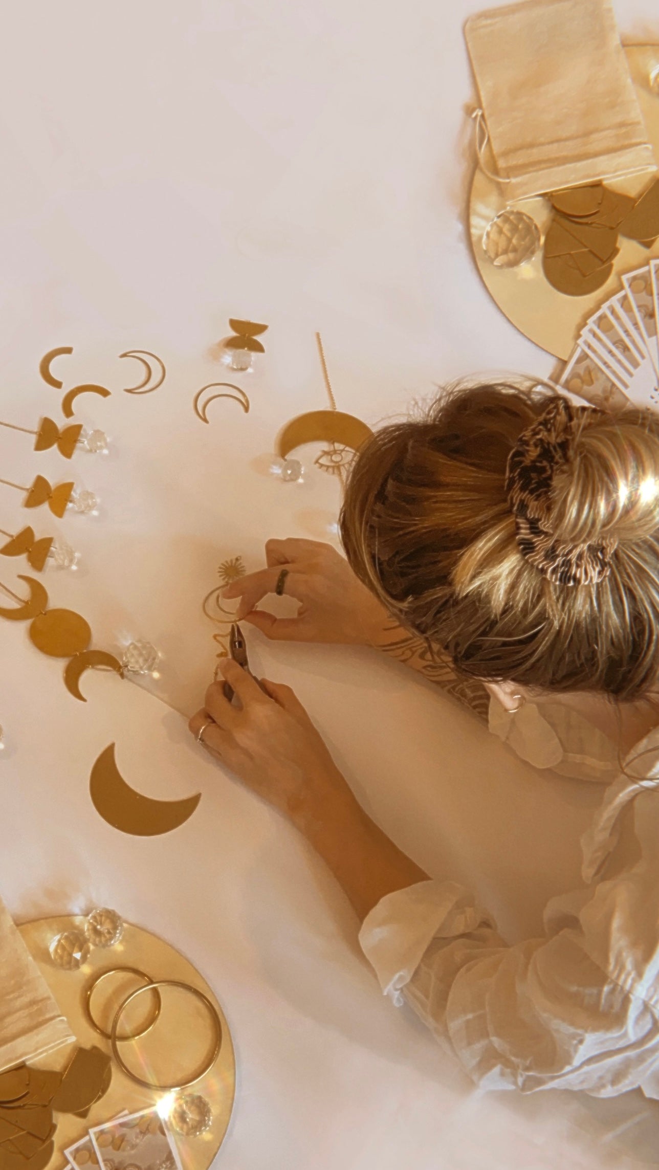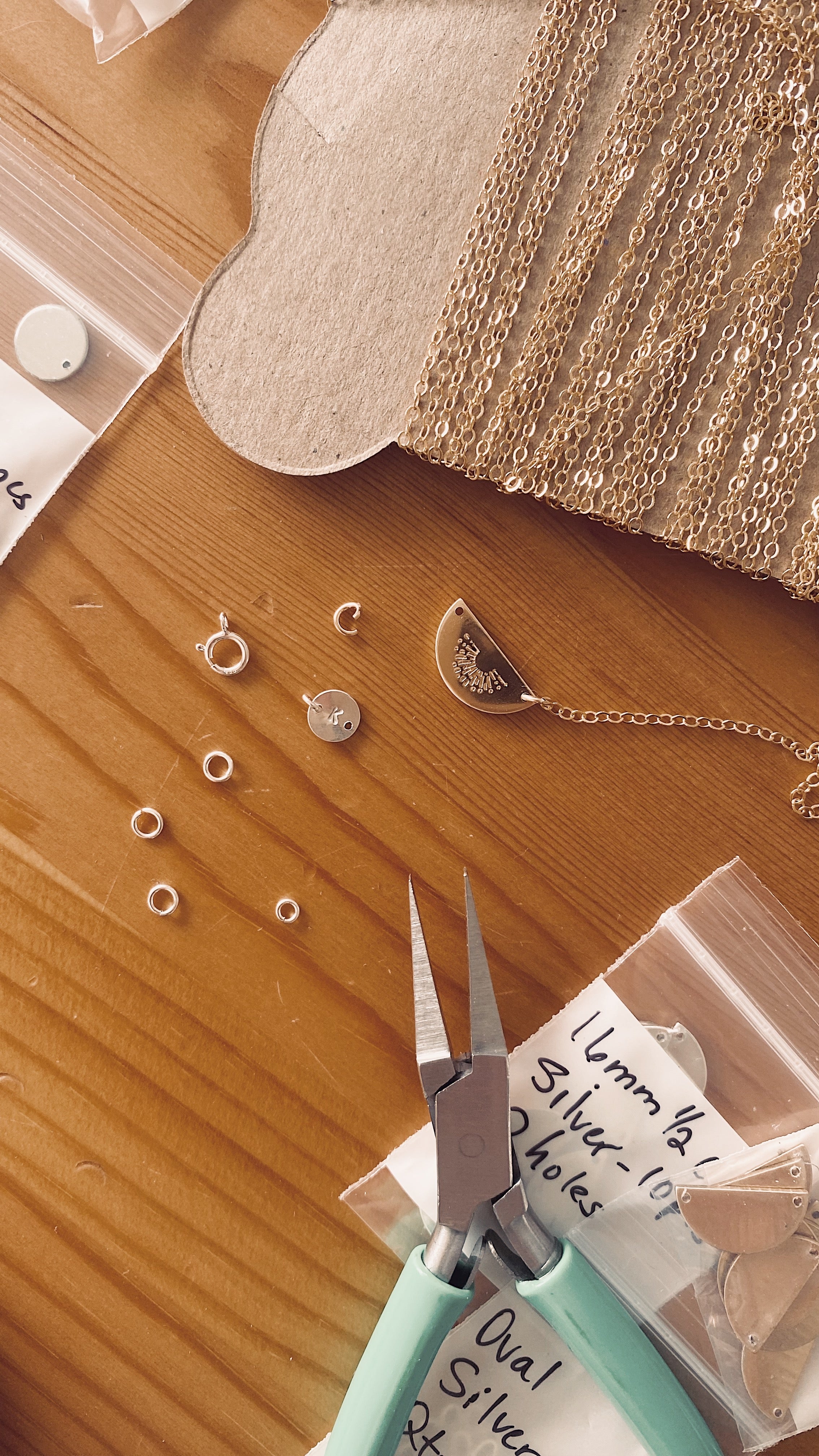 In my workshop, I craft, curate and design jewellery and suncatchers —using metals that I hand stamp and personalise like gold-filled and sterling silver, paired with natural healing gemstones.