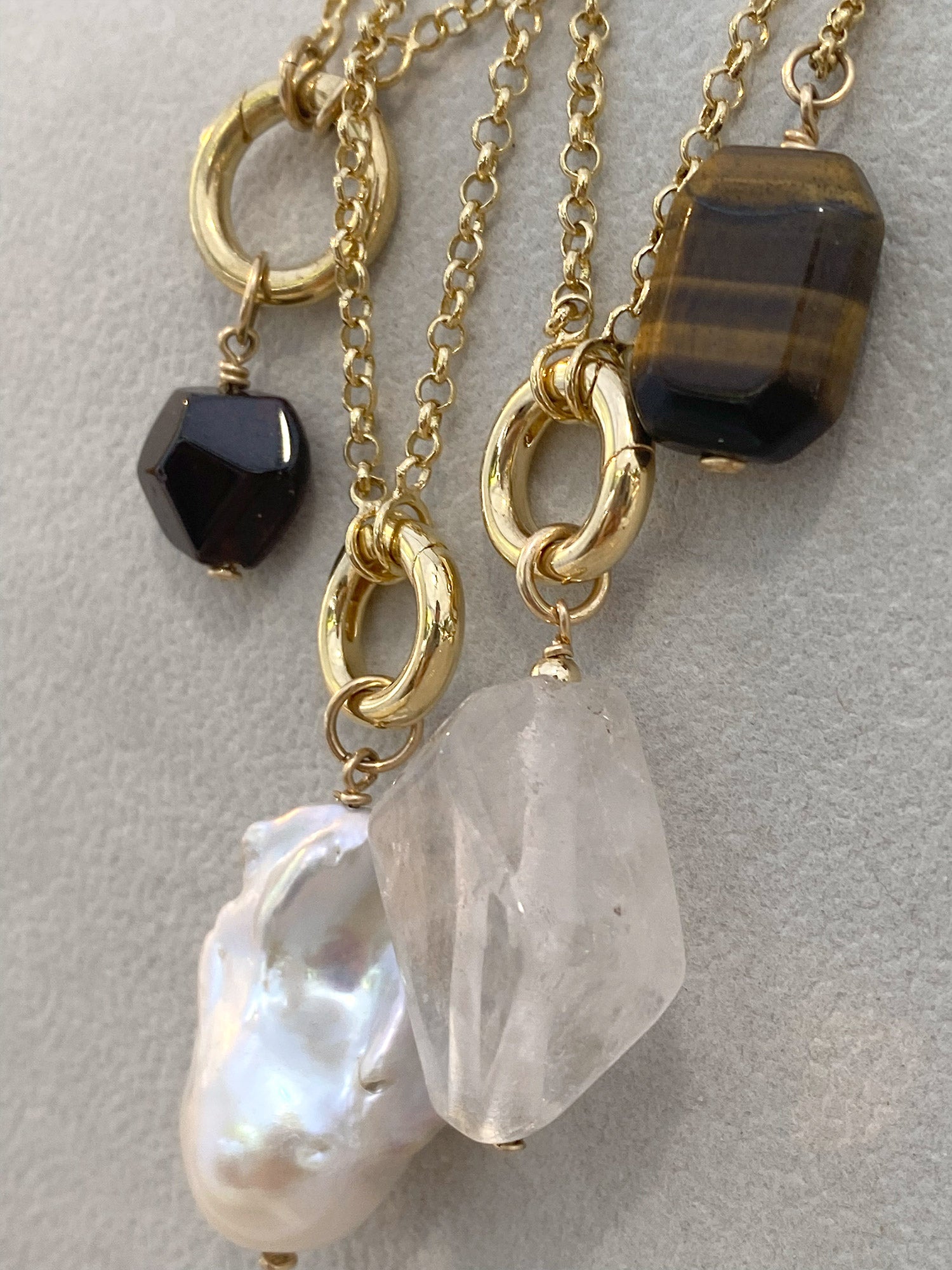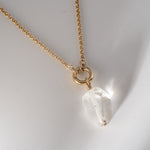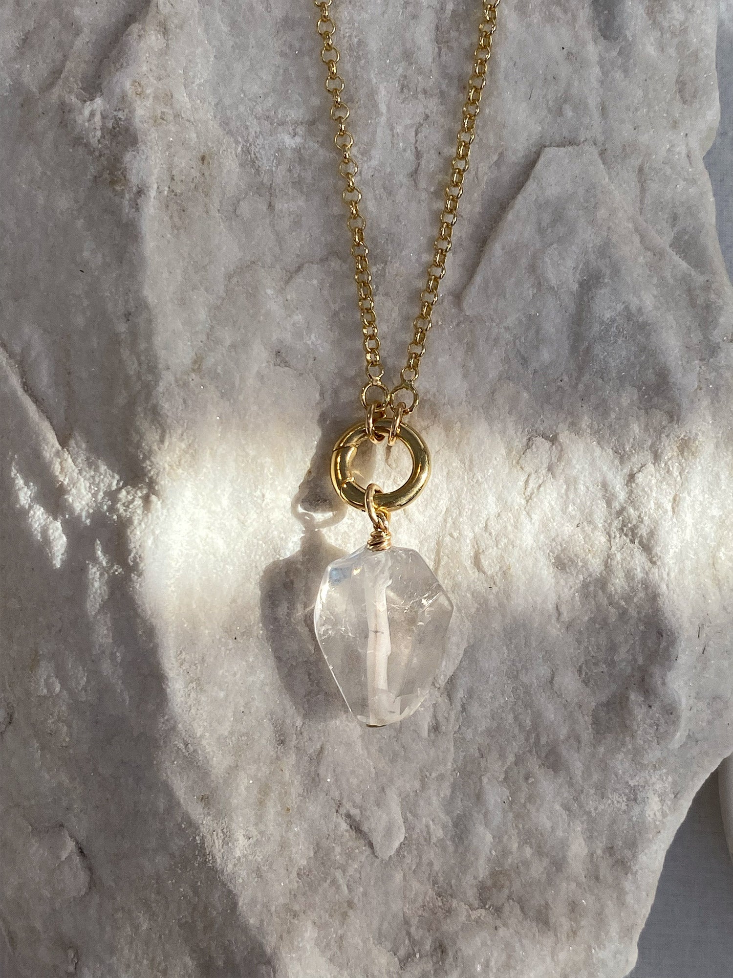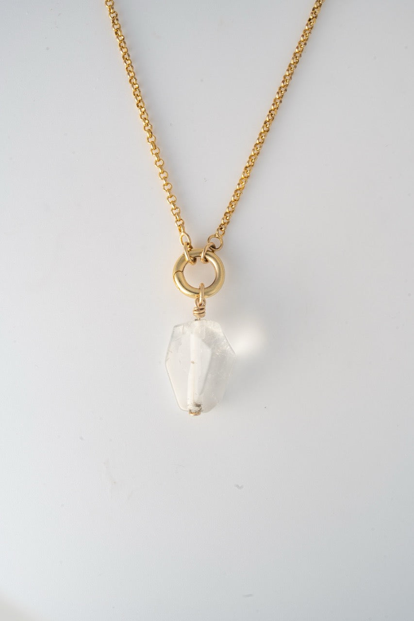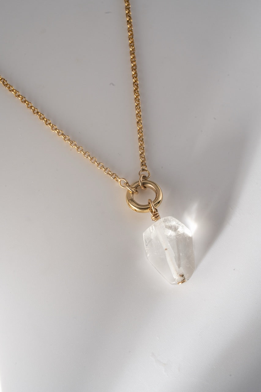 Elevate your collection with this captivating XL clear quartz necklace. Each natural stone is beautifully unique, and the thoughtfully designed chain gives you endless styling possibilities.